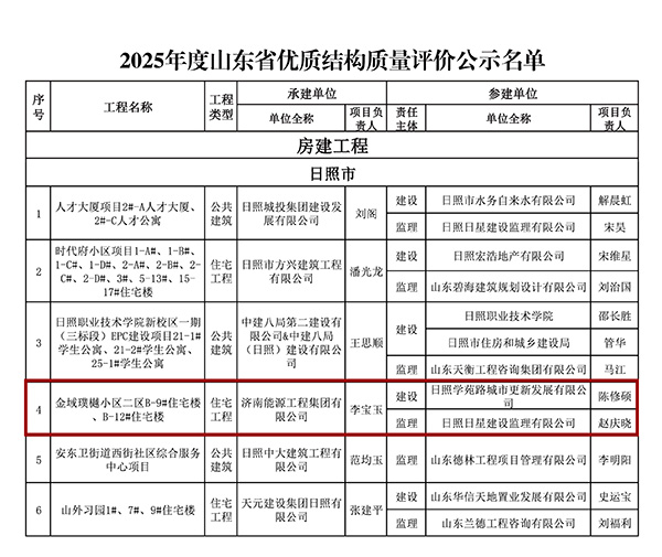 日照金域璞樾项目亦传喜讯,成功荣获省优质结构工程称号。该项目为地下防水面积近20万㎡的高端住宅集群,其在建筑工艺与品质把控上精益求精,凭借严苛的标准与扎实的施工,成为区域高品质住宅建设的典范。